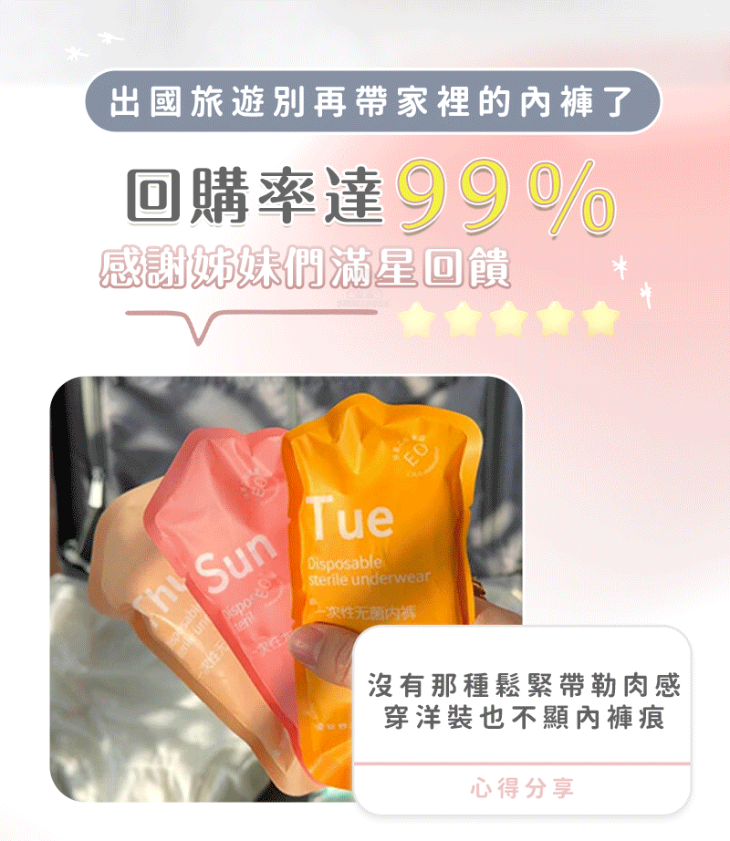 20分鐘前純棉無菌日拋內褲 - 【四套𝟒𝟎件】團購嚴選,數量有限NT$999
